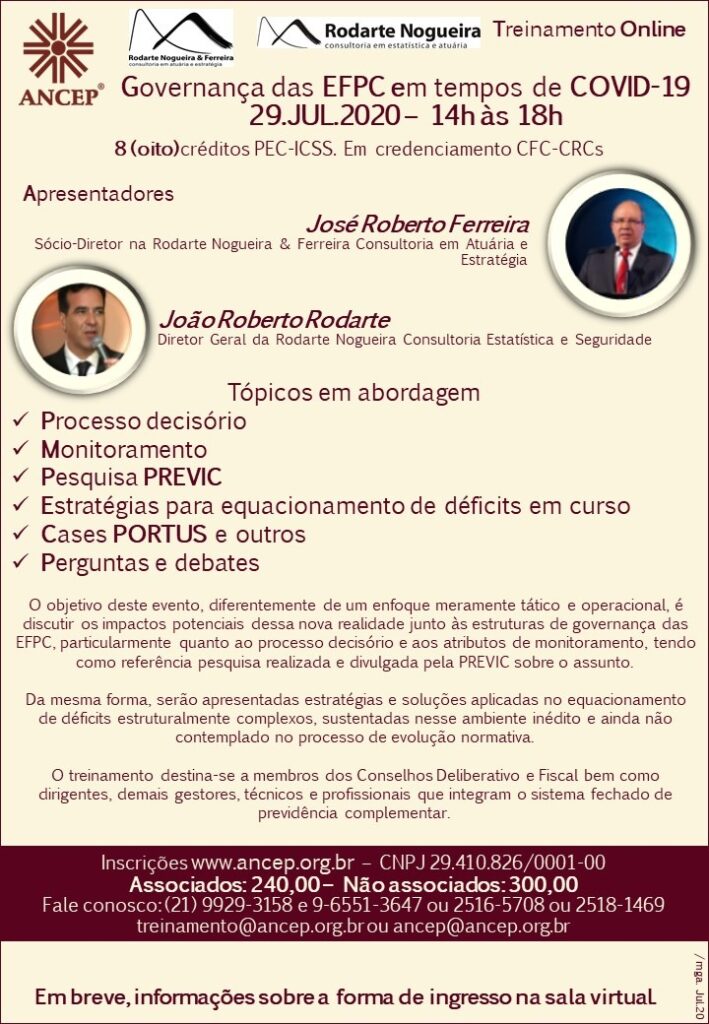 Governança será o tema do novo treinamento totalmente online organizado pela ANCEP (Associação Nacional dos Contabilistas das Entidades de Previdência). O evento será transmitido no dia 29 de julho, das 14h às 18h.