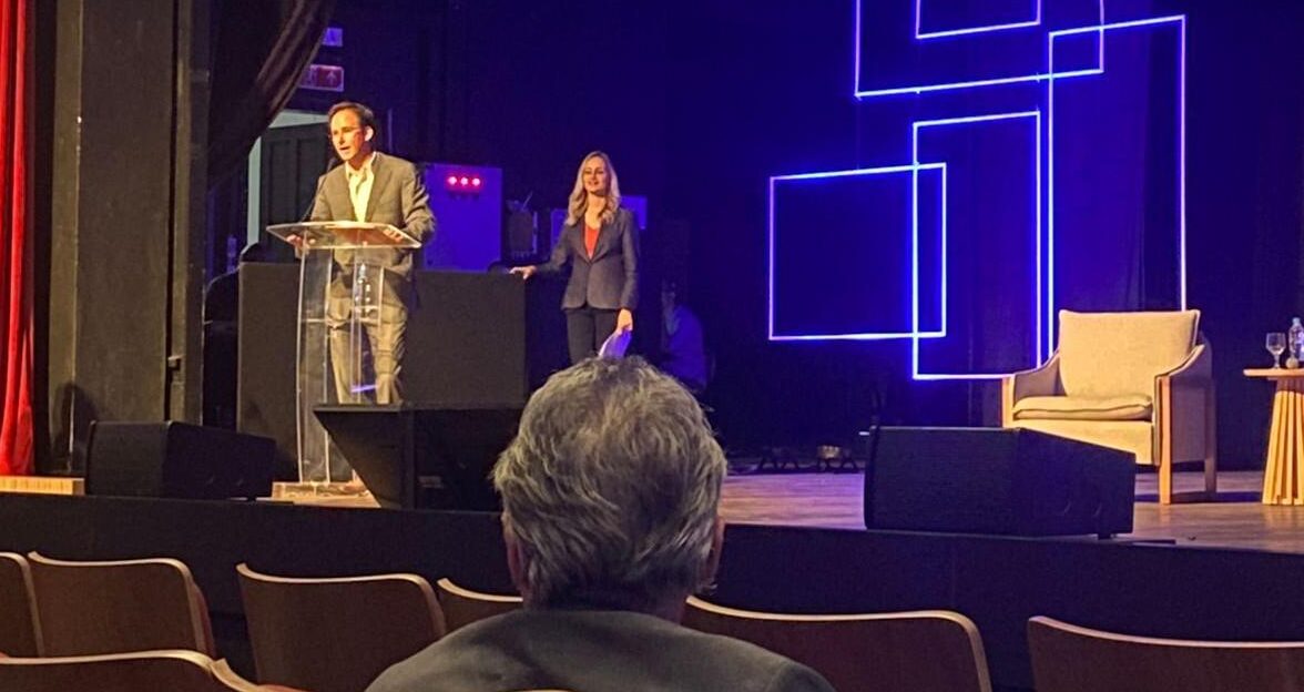 Bruno Marques e Marcos Peixoto, sócios da XP, encerraram o ciclo de palestras da manhã falando sobre mercado e investimentos. Bruno falou sobre cenário internacional e destacou o impacto da alta de juros nos Estados Unidos. “Quando juros sobem num país desenvolvido, como os EUA, você tem que reprecificar tudo no mundo inteiro”, afirmou.