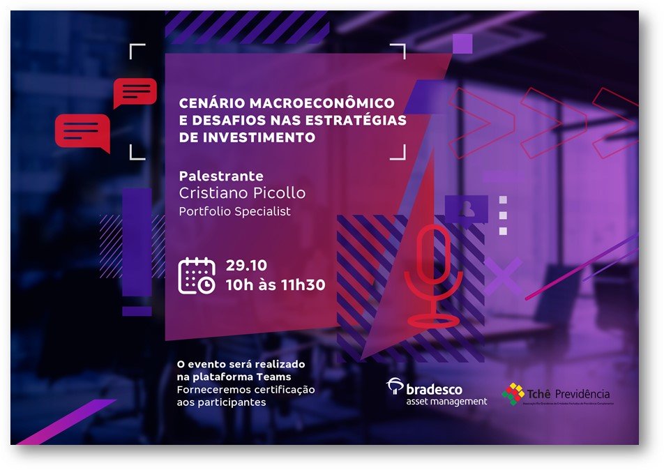 Eventos17 de outubro de 2020 Webinar Cenário Macroeconômico e Desafios nas Estratégias de Investimento Dia 29 de Outubro as 10h, inscreva-se abaixo: Seu nome (obrigatório) Seu e-mail (obrigatório) Celular Empresa Cargo 89169Δ